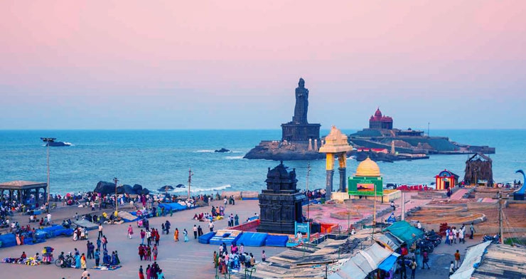 Early Morning Darshan at Rameshwaram Temple dedicated to Lord Shiva, was constructed during the 17th century. Ramanathaswamy Temple. Agni Theertham Temple - The sacredness of the place makes it a popular bathing spot with the pilgrims. Ideally a bath at Agni Theertham precedes the visit to the Ramanatha Swamy Temple. Dhanushkodi Temple � It is believed that the bridge was built by the monkey forces of Lord Rama to access Sri Lanka. Gandamadanaparavtham - the highest point in the island. The devotees believes that lord Rama's feet was placed on the stone. An earmark of the footprint is there. After breakfast check out and transfer to Kanyakumari. Check in to hotel and visit sightseeing . Visit Vivekananda Rock that houses a memorial dedicated to Swami Vivekanan .The Memorial is built at the convergence of the Indian Ocean, the Arabian Sea and the Bay of Bengal. Kanyakumari is a place where you can enjoy Sun rise and Sunset from the same point, something special to remember. Enjoy Sunset of Kanyakumari from the tip of India, overnight at Hotel.