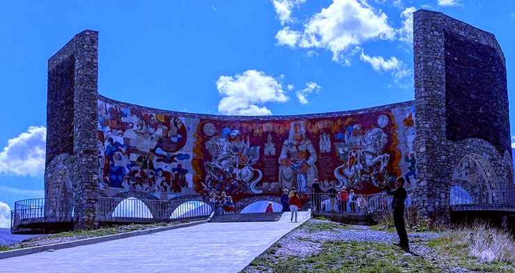 Gudauri Ski Resort - is a small touristic settlement and ski mountain resort located at the altitude of 3,000m on the southern slopes of the Lesser Caucasus range of Georgia. Gudauri is situated 120 km from Tbilisi. You can reach it by the Georgian Military Road for about 2 hours by car. Once many well-known writers and poets such as: Alexander Griboedov, Alexander Pushkin, Mikhail Lermontov, Vladimir Mayakovsky and even Alexandre Dumas went by it. Gudauri Panorama, Georgia � Russia Friendship Monument. The monument was built in 1983 to commemorate 200 years� anniversary of the